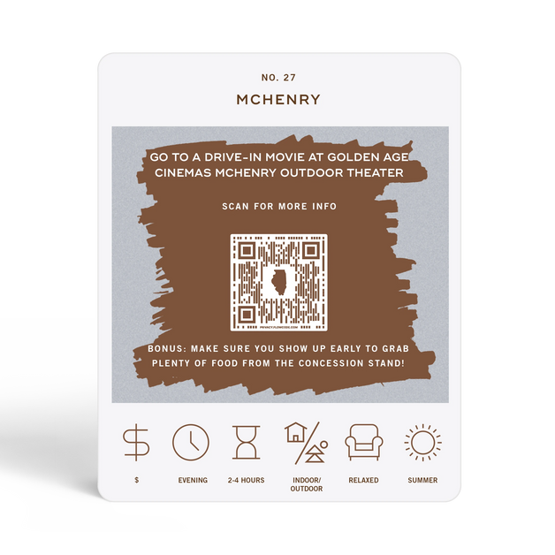 The Illinois Adventure Bucket List is a deck of 50 cards, each featuring a unique adventure within the state. Each card is labeled with the name of a city or county to indicate where the adventure takes place. At the bottom of each card, there are icons that provide additional details about the adventure, including its price range, duration, recommended time of day, and season. To discover the adventure, simply scratch off the card. If you want more information about the activity, scan the QR code on the card with your phone. This will take you to a website where you can learn more about the adventure and get tips on how to make the most of your experience.