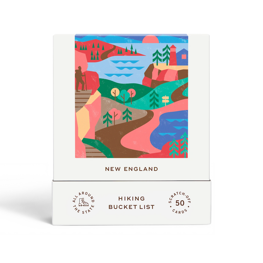 The New England Hiking Bucket List features 50 hikes from every corner of the region—designed to help you explore New England's most iconic and awe-inspiring trails. You'll find hikes in or near Connecticut, Massachusetts, Maine, New Hampshire, Rhode Island, and Vermont. From bucket-list destinations to hidden gems, this box is your gateway to discovering the best hikes New England has to offer.