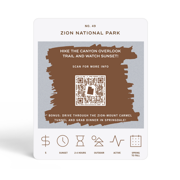 Each adventure card in the Utah Adventure Bucket List has a hidden QR code that can be scanned using a smartphone camera. The QR code will lead you to a page on our website that offers additional information and links for the adventure, including maps and any other resources that might be helpful for planning and completing the activity. While the QR code is not required to complete the adventure, it can be a useful supplement for those who want more information or guidance.