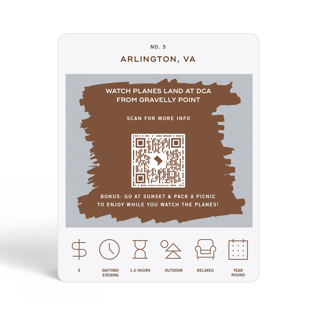 Each adventure card in the Washington D.C. Adventure Bucket List has a hidden QR code that can be scanned using a smartphone camera. The QR code will lead you to a page on our website that offers additional information and links for the adventure, including maps and any other resources that might be helpful for planning and completing the activity. While the QR code is not required to complete the adventure, it can be a useful supplement for those who want more information or guidance.