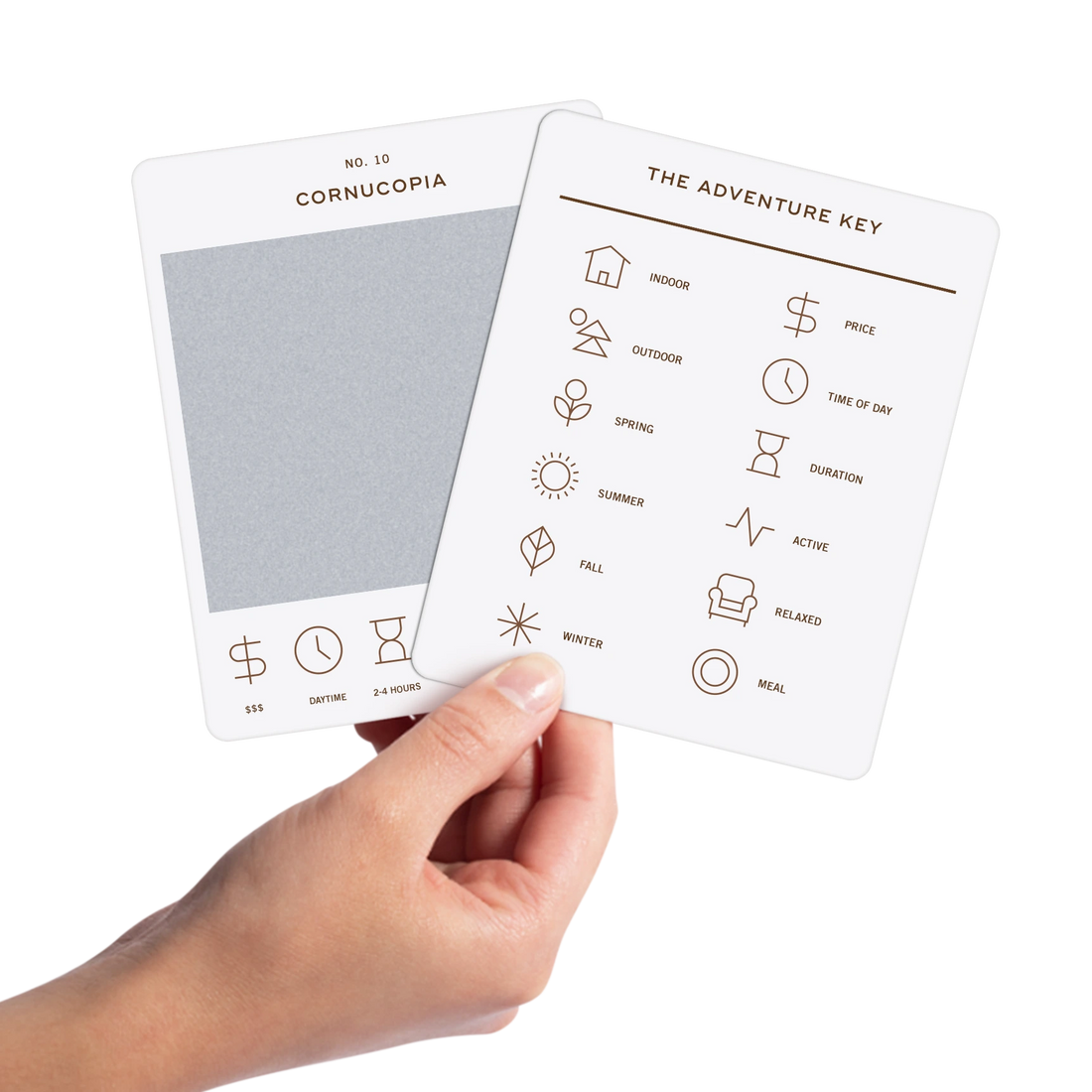 50 scratch off bucket list adventures around the state of Wisconsin. Pick a city that you want to explore, check out the icons at the bottom of the card to determine the season, cost, and time of day, and then scratch off the card to reveal your adventure!